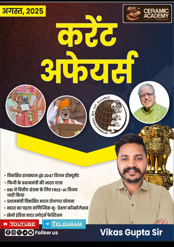 August Rajasthan Current Affairs 2025 by Vikas Gupta |