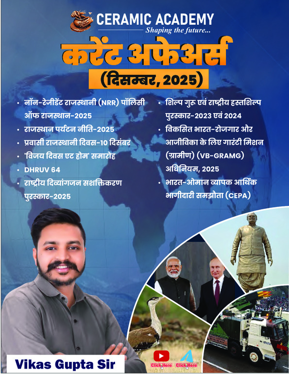 December Rajasthan Current Affairs 2025 by Vikas Gupta |